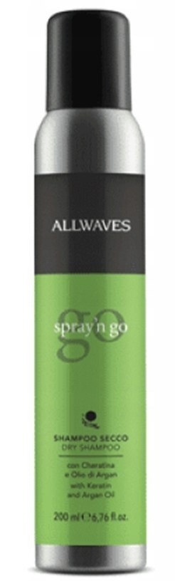 Suchy szampon Allwaves Spray'n Go to produkt do zadań specjalnych. Nie wymaga użycia wody, dlatego świetnie sprawdza się w podróży i kryzysowych sytuacjach, kiedy tradycyjne umycie głowy jest niemożliwe lub nie masz na nie czasu. Szampon natychmiast pochłania nadmiar sebum oraz inne zanieczyszczenia i tym samym przywraca włosom pożądaną świeżość.