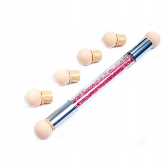 – Dwustronny wymienny aplikator zdobiony kryształkami do stylizacji ombre, baby boomer, cieniowania oraz aplikacji pyłków.