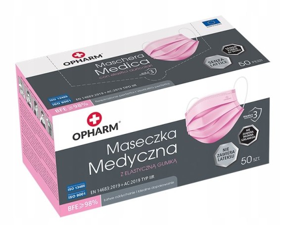 Maseczki chirurgiczne Opharm różowe typ IIR 50 szt.