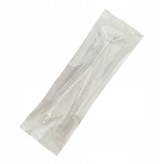 Pęsety plastikowe pakowane są pojedynczo w foliowo-papierowy pakiet.