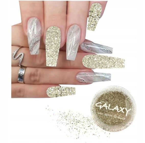 Jeśli szukasz niebanalnej propozycji do wykonania nowej stylizacji, daj się zaskoczyć efektowi pełnemu diamentowych, rozświetlonych iskierek! Możesz wykonać pełny manicure z pyłkiem GALAXY lub tylko dodać trochę blasku za pomocą minimalistycznych lub bardziej odważnych akcentów.