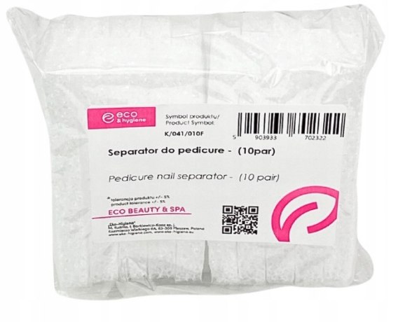 Separatory wykonane z elastycznej i delikatnej białej pianki służące jako separator do oddzielenia palców u stóp podczas stylizacji paznokci zarówno u rąk, jak i u stóp podczas zabiegu pedicure.